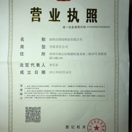 深圳市四而科技有限公司三證合一